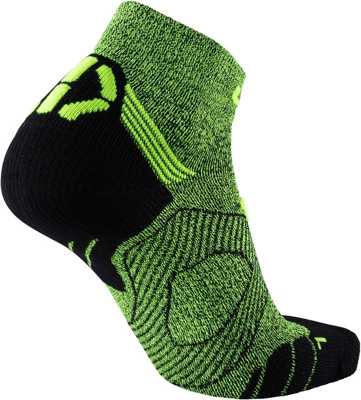 De Run Super Fast Sokken van het merk Uyn zijn gemaakt voor snelheid. De hardloopsokken hebben een ergonomisch voetbed speciaal voor sport gerelateerde belastingen en hebben compressie precies waar dit nodig is met een goede schokabsorptie. De gevoelige achillespees wordt hierbij extra beschermt waarbij een 3D microkanaalstructuur zorgt voor een luchtcirculatie die uw voeten droog houdt en op een aangename temperatuur houdt. Voor een optimale pasvorm is er gebruik gemaakt van een wrijvingsarme en geventileerde structuur onder de enkel en flexibele, anatomisch gevormde manchetten voor een goede grip zonder vernauwing. De sokken hebben een laag model en zijn wasbaar op 40 graden.