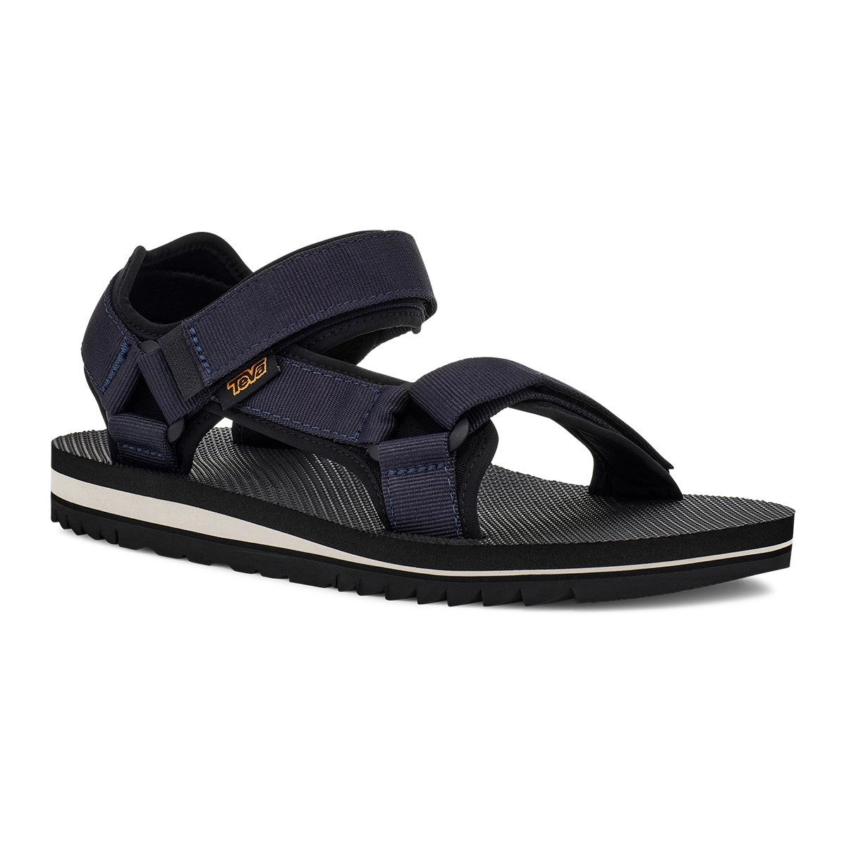 Deze sandaal komt uit de serie Universal Trail van het merk Teva en is ideaal voor uw wandelavonturen. De sandaal is voorzien van een Vibram megagrip zool, zodat u overal geniet van extra grip. De voorgevormde EVA-zool biedt extra steun aan de voetboog en de verstelbare banjes hebben een ademende meshvoering. De sandaal is waterbestendig en sneldrogend en voelt heerlijk zacht aan aan uw voet. Gemaakt van gerecycled polyester is deze sandaal ook nog eens duurzaam. De sandaal is gemakkelijk aan en uit te trekken dankzij de klittenbandsluiting.