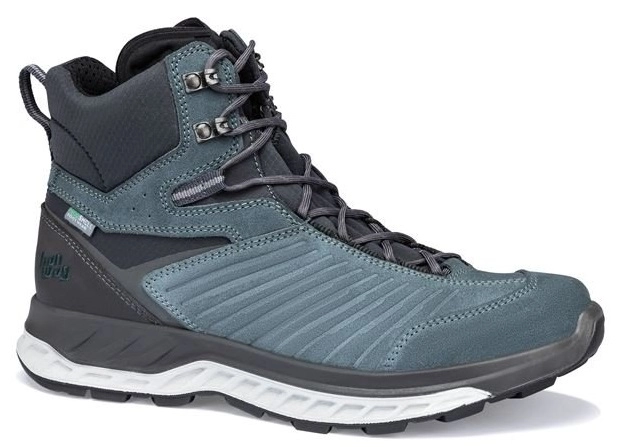 Modern, lichtgewicht en multifunctioneel. Deze Blueridge ES is een veelzijdige wandelschoen boordevol innovatieve duurzaamheidskenmerken. Denk hierbij bijvoorbeeld aan het gebruik van duurzaam Perwanger leer voor het bovenwerk, het naar ‘Global Recycling Standard’ 100% gerecyclede textiel in het bovenwerk en het compleet PFC-vrije waterdichte membraan. Duurzaam, waterdicht en ademingsactief zijn de woorden die het, door HANWAG ontwikkelde PU-membraan het best omschrijven. Het membraan is ontworpen op basis van een complex en hydrofiel systeem dat aangebracht wordt in een stevig drielaags laminaten gegoten vorm. De verwerkte materialen zijn afkomstig van Europese leveranciers en de schoen wordt volledig in Europa gemaakt. Duurzaamheid gaat echter niet ten koste van de functionaliteit en comfort! De Blueridge ES bewijst dit met haar perfecte pasvorm en een nieuw ontwikkelde tussenzool. De zool bestaat uit een driedimensionale structuur van compact en geëxpandeerd polyurethaan die de voet comfortabel omsluit. De opstaande rand van de zool bestaat uit stabiliserend PU en biedt extra goede steun rondom de voet en hiel. Een thermovormbaar schuim in de HANWAG 3D-BreathFit tong compenseert de anatomische asymmetrie van de voet door asymmetrische polstering en past zich aan de individuele voetvorm aan. Dankzij de antislip Terragrip-buitenzool met een 4 millimeter diep profiel en extra grote noppen voorzien van een breed contactoppervlak rolt de voet soepel af. Hierdoor voelt de modern vormgegeven Blueridge ES zich thuis zich op allerlei terrein uiteenlopend van het natte, herfstige middelgebergte tot zanderige mediterrane kust wandelpaden.